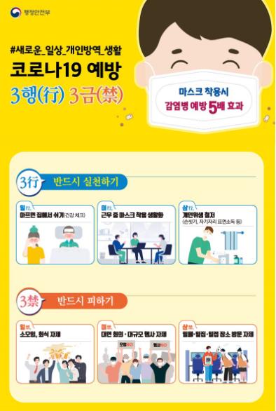 삼行, 개인위생 철저 (손씻기, 자기자리 표면소독 등)