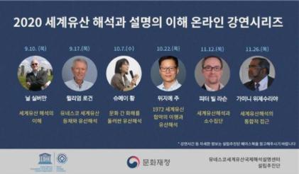 문화재청(청장 정재숙)의 후원을 받는 유네스코 세계유산 국제 해석 설명 센터 설립 추진단은 오는 10일부터 ‘세계유산 해석과 설명의 이해’를 위한 온라인 강연시리즈(6회)를 개최한다.