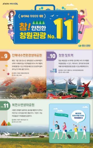 창원시(시장 허성무)는 10일 일정 거리를 유지하면서 여유롭고 안전하게 자연을 즐길 수 있는 ‘참! 안전한 창원관광’이란 주제로 가을철 비대면 관광지 11곳을 소개했다.