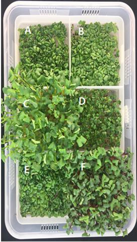 똑같은 조건(청색광 125?mol m?2s?1, 5일)을 새싹배추, 청경채, 홍빛열무싹, 무순에 적용했을 때, 새싹배추와 홍빛열무싹은 백색광을 처리했을 때보다 비타민 C가 각각 37%, 36%, 적색광과의 비교 시 각각 35%, 30% 이상 증가했다.
