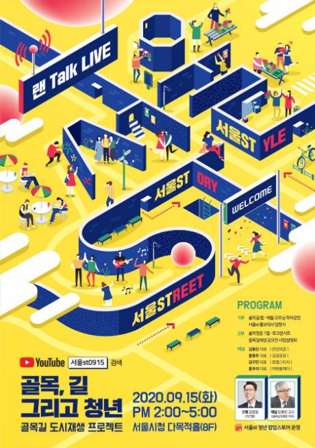 서울시가 주거난 해소 등 청년들이 필요로 하는 아이템으로, 골목길이라는 공간에 활력을 불어넣고 있는 청년창업가들과 함께 하는 ‘서울st 골목길 청년 랜선토크’를 9월 15일(화) 오후 2시부터 5시까지 개최한다.
