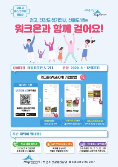 세종특별자치시보건소(소장 권근용)가 시민을 대상으로 모바일 앱을 통한 비대면 걷기활성화사업 ‘워크온’을 운영한다.