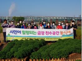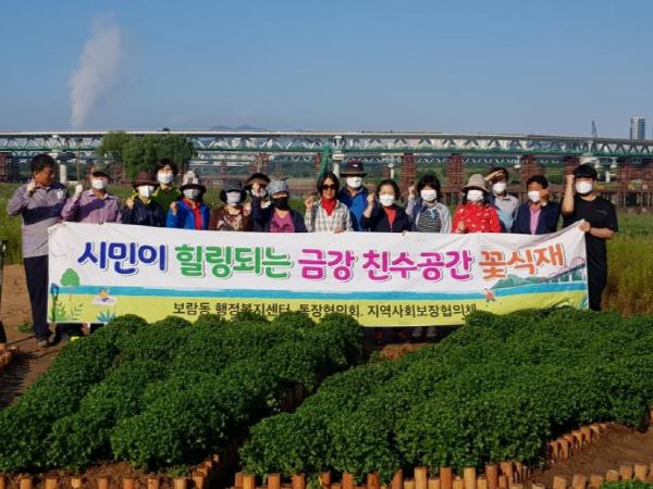 금강 친수공간 꽃식재 사업은 시청 치수방재과에서 주관하는 사업으로, 보람동 통장협의회?주민자치회?지역사회보장협의체 등 직능사회단체 회원 30여 명이 직접 기획하고 참여했다.
