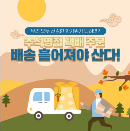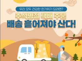 추석 연휴 전후로 선물과 택배를 미리 주문하여 배송물량이 분산될 수 있도록 따뜻한 배려가 필요하다.