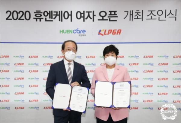 [한국4차산업신문] 9월 15일 한국여자프로골프협회( KLPGA)가 서울시 강남구 소재의 KLPGA 사무국에서 ‘2020 휴엔케어 여자오픈’의 개최 조인식을 가졌다.