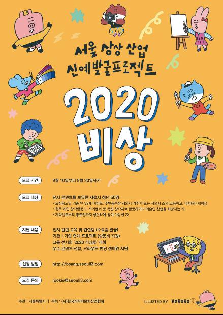 [한국4차산업신문] 서울시는 웹툰, 애니메이션, 캐릭터 등 문화 콘텐츠 청년 창작자들의 역량을 키우기 위해 ‘①저작권 등록, 브랜딩 등에 대한 교육·컨설팅 ②온라인 전시 ③크라우드 펀딩 캠페인’까지 지원하는 ‘상상산업 신예 발굴 프로젝트 : 2020 비상’을 시작한다고 밝혔다.