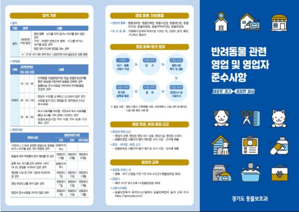 홍보물에는 반려동물 영업의 종류, 대상동물, 등록 및 허가 절차, 벌칙기준, 영업자별 준수사항 등의 내용이 담겼다.