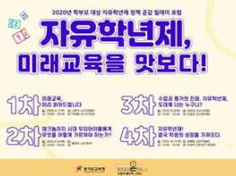 경기도교육청(교육감 이재정)이 중학교 공교육 신뢰도를 높이기 위해 17일부터 다음 달 15일까지 4차례에 걸쳐 ‘자유학년제 정책 공감 포럼’을 연다.