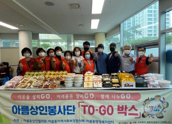 [한국4차산업신문] 세종특별자치시 아름동상인봉사단(단장 김종원)은 아름동지역사회보장협의체(위원장 여상수·오미경)와 협력해 16일 코로나19로 힘든 이웃에게 음식을 제공하는 ‘아름상인봉사단 투-고(TO-GO)박스’ 지원 사업을 진행했다.