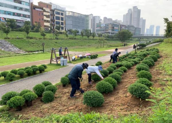 이날 종촌동통장협의회·희망일자리사업 참여자 등 주민 20여 명이 참석한 가운데 국화 120본을 식재했다.