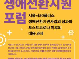 서울시50플러스재단(대표이사 김영대)은 지난 4년 간 추진해 온 중장년 생애전환사업의 성과와 사례를 공유하고 향후 발전 방향을 모색하기 위한 ‘제1회 생애전환지원 포럼’을 17일(목) 온라인으로 개최했다.