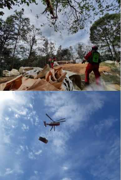 청양산림항공관리소는 충청남도의 헬기지원 요청을 받아, 차와 사람이 접근하기 어려운 산악지형 상황에 효율적인 방법으로 운반할 수 있는 헬기(대형 KA-32)를 투입시켜 자재운반을 실시하였다.