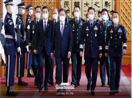 이어 대통령은 "이번 인사가 서욱 장관이나 원인철 합참의장을 비롯해 아주 파격이라는 평가를 듣고 있는데, 이번에 저는 세 가지 발전 전략에 부합해서 빠른 변화를 가장 빨리 이해하고 군에 적용해 군 조직을 더 유연하게 만들 수 있는 능력의 관점에서 인사를 했음을 유념해 달라"고 당부했다.