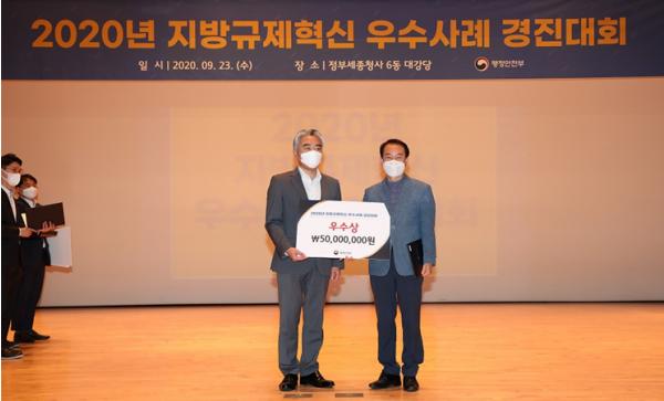 [한국4차산업신문] 부산시는 어제(23일) 세종정부청사 대강당에서 개최된 행정안전부 주관 「2020년 지방규제혁신 우수사례 경진대회」에서 우수상과 장려상을 받았다고 밝혔다.