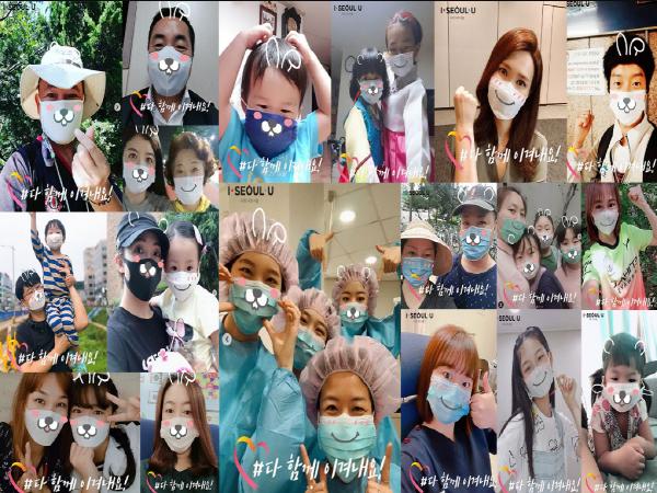 인스타그램 등 ‘#마스크꼭’, ‘#다함께이겨내요’, ‘#서울시민_토닥토닥’ 등의 해시태그로 검색했을 시, 시민들의 코로나 극복 응원 문구는 물론 가족?친구와 함께 마스크 착용 실천을 독려하는 콘텐츠를 확인할 수 있다.