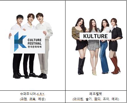 이를 위해 세계적 인기를 끌고 있는 케이팝 가수 ‘슈퍼주니어 케이아르와이(K.R.Y.)’와 ‘레드벨벳’을 ‘세계(글로벌) 한류 홍보대사’로 위촉하고, 이들이 행사 홍보뿐만 아니라 다양한 마케팅 활동, 공연 등에 참여할 수 있도록 해 ‘한국문화축제’에 대한 관심을 유도할 예정이다.