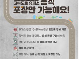 아울러, “고속도로 휴게소 이용자께서도 코로나19 감염 및 확산 방지를 위해 마스크 착용, 이용자 간 2m 거리두기, 시설 이용 전ㆍ후 손 씻기, 시설 내 오래 머무르지 않기, 구분된 출·입구 이동동선 준수, 출입자 명부 작성 등 방역수칙을 꼭 실천해 주시기를 당부 드립니다”라고 밝혔다.