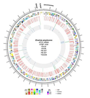 이번에 해독된 화상병균(3지역 5균주)의 유전체는 북미, 유럽 등에서 분리된 다른 화상병균과 마찬가지로 약 380만 염기쌍으로 이루어진 염색체와 2만8천 염기쌍의 플라스미드로 구성되어 있으며, 핵심유전체의 계통분석을 통해 북미에서 발견되는 종류 중의 한 유전형과 매우 가까운 관계인 것을 밝혀냈다.