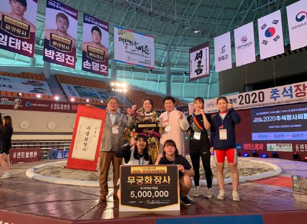 지난달 30일, 강원도 영월군 영월스포츠파크실내체육관에서 열린 2020추석장사씨름대회에서 이다현선수가 올해 설날, 단오대회에 이어 3연속 민속대회무궁화장사(80Kg이하)타이틀을 거머쥐는 영광을 안았다.