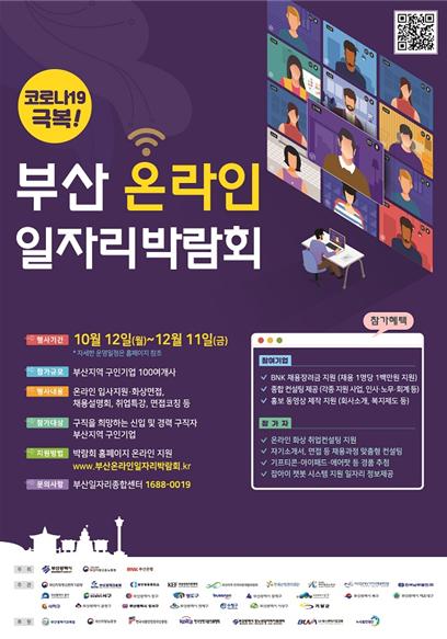 [한국4차산업신문] 부산시는 코로나바이러스감염증-19(코로나19)로 인한 고용 위기 극복을 위해 부산지방고용노동청, BNK부산은행과 함께 10월12일부터 12월 11일까지 「부산 온라인 일자리 박람회」를 개최한다고 밝혔다.