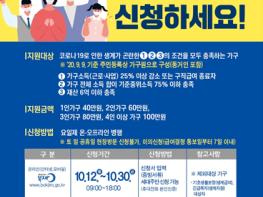 지급 금액은 ▲1인 가구 40만 원 ▲2인 가구 60만 원 ▲3인 가구 80만 원 ▲4인 가구 이상 100만 원이며 기준 충족 및 타 지원제도 수급 여부를 확인해 지원 여부를 결정한 후 11~12월 중 신청한 계좌에 현금으로 1회 지급된다.