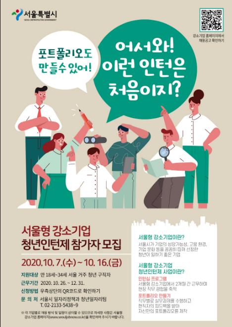 661개 서울형 강소기업 중 인턴채용을 희망하는 150여개 강소기업(기업별 2명이내)이 직접 청년인턴 채용과정(10.7~10.23)을 진행한다. 선발된 청년은 서울시와 청년인턴 근로계약을 체결한 후 10월 26일(월)부터 12월 31일(목)까지 업종별·직무별 전문화된 분야에서 인건비를 지급받으며 실무를 경험할 수 있게 된다.