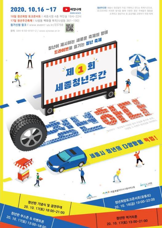 세종 청년센터 세청나래는 오는 16일부터 17일까지 이틀간 시청 여민실, 나성동 등에서 제1회 2020 세종청년 주간 ‘청년하다’를 개최한다.
