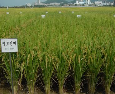 ‘영호진미’는 이삭이 늦게 패는 중만생종으로, 다른 벼 품종보다 4∼6일 정도 늦게 수확하는 것이 좋다.