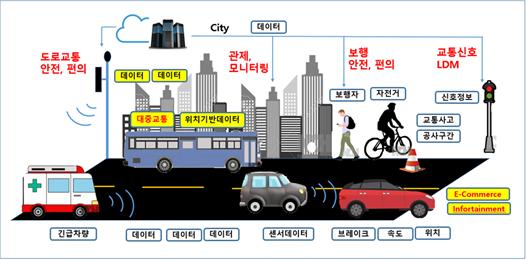 예를 들어 자율주행에 필요한 차량추돌방지 서비스 등을 구현하려면 차량의 위치, 속도, 시간 등의 데이터가 차량 간에 교환되어야 하며, 아울러 교환되는 데이터의 호환성과 데이터 전송의 안정성을 보장하는 데에도 표준정립이 선행되어야 한다.
