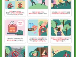 첫째, 요즘처럼 계절이 바뀌면서 낮의 길이가 짧아지고 일교차가 커지는 시기일수록 지정된 등산로를 이용하고, 입산이 통제된 위험지역은 출입하지 않아야 한다.