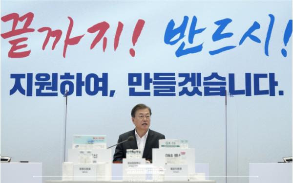 기업들로부터 좋은 소식 고대하겠다. 정부도 모든 지원을 다하겠다. 기업과 정부가 끝까지 함께하면 우리나라 바이오헬스 산업의 수준을 한단계 높이는 계기가 될 것이다. 반드시 끝을 보자.”