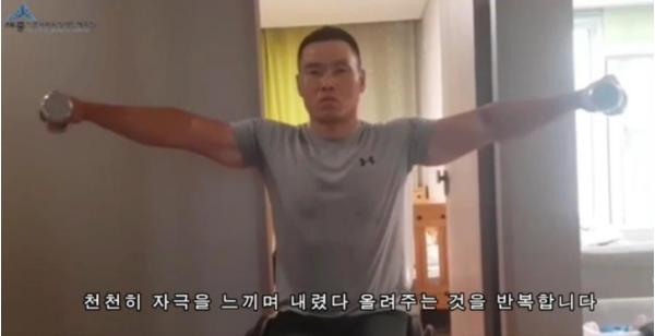 또, 이날 오후에는 세종시청 테니스팀 손지훈 선수(국내 남자단식 랭킹 7위)가 화상회의 앱을 활용해 시민을 대상으로 실내에서도 간단하게 할 수 있는 근력운동 동작을 소개했다.