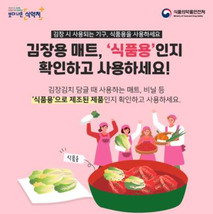 [한국4차산업신문] 김장김치 담글 때 사용하는 매트, 비닐 등 ‘식품용’으로 제조된 제품인지 확인하고 사용하자.
