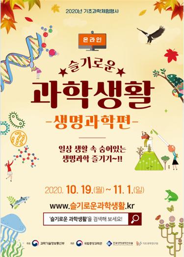 국립중앙과학관(관장 유국희)은 기초과학에 대한 관심과 흥미를 느끼고 중요성을 알리기 위해 기초과학 체험행사인 슬기로운 과학생활(생명과학편)을 10월 19일부터 11월 1일까지 2주간 온라인으로 개최한다.
