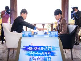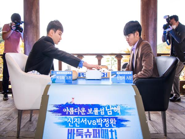 [한국4차산업신문] 세계랭킹 1·3위(국내 랭킹 1·2위)간 대결로 관심을 모으고 있는 ‘신진서 VS 박정환 바둑 슈퍼매치’가 19일 오후 이순신 순국공원 관음루에서 열린 제1국을 시작으로 본격적인 막을 올렸다.
