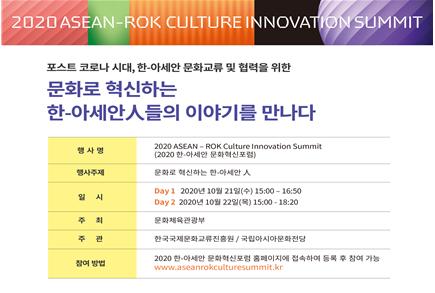 [한국4차산업신문] 문화체육관광부가 주최하고, 한국국제문화교류진흥원(원장 김용락)과 광주 국립아시아문화전당(전당장 직무대리 박태영)이 공동으로 주관하는 ‘2020 한·아세안 문화혁신포럼’이 10월 21일과 22일, ‘아시아문화중심도시’ 광주에서 비대면 행사로 열린다. 광주 국립아시아문화전당은 한-아세안의 공동 번영의 의지를 담은 뜻깊은 공간으로, 작년 한-아세안 특별문화장관회의가 열린 장소이기도 하다.