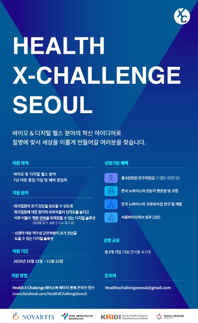 ‘헬스엑스챌린지 서울(Health X-Challenge Seoul)’는 노바티스의 디지털 혁신 연구소인 ‘노바티스 바이옴(biome)’에서 주관하는 글로벌 개방형 혁신프로그램으로, 국내에서 열리는 것은 올해가 처음이다.