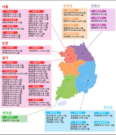 지방권에서는 총 13곳 3,287호에 대한 입주자를 모집한다.