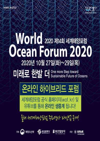 [한국4차산업신문] 해양수산부는 부산광역시, 부산일보, (사)한국해양산업협회와 공동으로 10월 27일부터 29일까지 부산 롯데호텔에서 ‘2020 제14회 세계해양포럼(World Ocean Forum)’을 개최한다.