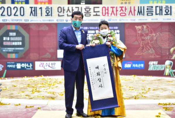[한국4차산업신문] 안산시에서 열린 ‘2020 제1회 안산 김홍도여자장사 씨름대회’에서 안산시청 씨름 선수단의 이아란 선수가 매화급 장사에 등극하는 등 성황리에 종료됐다고 밝혔다.