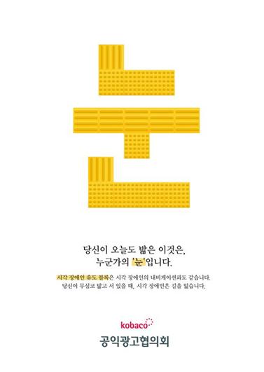 이 작품은 거리의 시각장애인 유도 블록을 무심코 밟는 행위가 시각장애인의 길을 잃게 만들 수 있다는 메시지를 담아 일상에서 인간 존중의 가치를 일깨워 주는 탁월한 작품이라는 평가를 받았다.