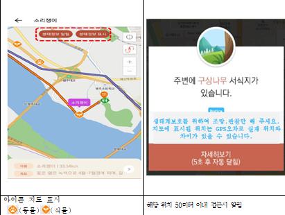 뿐만 아니라 탐방객에게 자신이 위치한 곳 50m 이내에 해당 동·식물의 서식지가 있을 때 이를 알려주는 ‘알림기능’도 함께 마련했다.