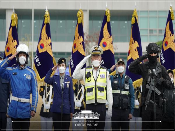이어 "우리 경찰은 사명감과 책임감으로 어려움을 극복하며 ‘가장 안전한 나라’를 만들어 가고 있다"며 "올해는 특히, 코로나 극복이라는 국가적 과제 앞에서 흔들림 없이 사명을 다하며, 국민에게 큰 힘이 되었다"고 격려했다.
