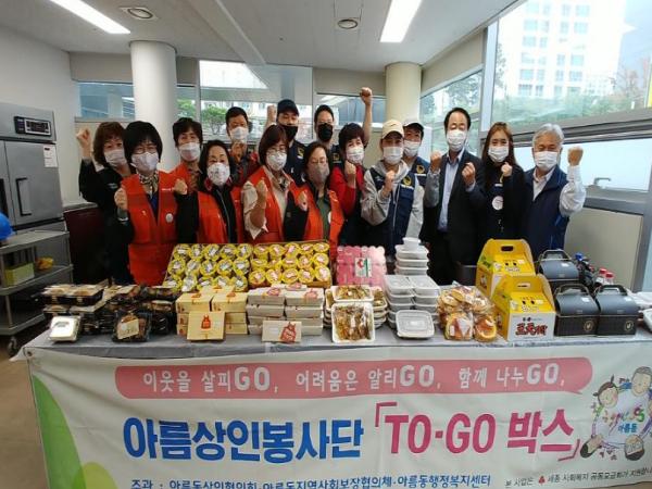 세종특별자치시 아름동상인봉사단(단장 김종원)은 아름동지역사회보장협의체와 21일 소외계층을 위해 ‘아름상인봉사단 투-고(TO-GO)박스’ 지원 사업 일환으로 음식 기부에 나섰다.
