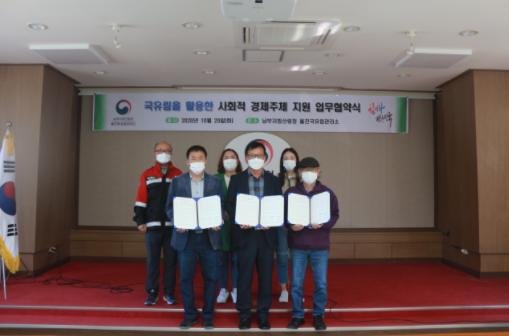 [한국4차산업신문] 남부지방산림청 울진국유림관리소(소장 전상우)는 지난 20일 관리소 회의실에서 울진국유림영림단사회적협동조합, 주식회사 울진토염(예비사회적기업)과 ‘국유림을 활용한 사회적기업 지원 업무협약’을 체결하였다.