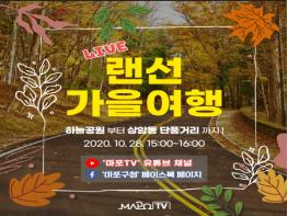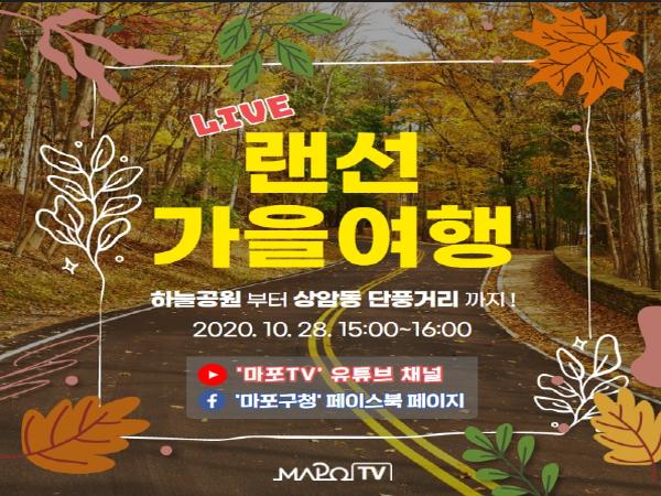 ‘랜선 가을여행’은 10월 28일 오후 3시부터 4시까지 약 1시간 동안 마포구 유튜브 채널(마포TV)와 마포구 페이스북을 통해 온라인 생중계된다. 현재 일반인의 출입이 금지된 하늘공원의 억새 풍경을 생동감 넘치게 전달하기 위해 하늘에 드론을 띄우고, 동시에 2대의 현장 카메라가 상암동 지역의 숨겨진 단풍명소 찾아가 촬영하는 3원 생중계 방식으로 진행될 예정이다.