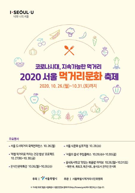 [한국4차산업신문] 서울시는 ‘2020 서울 먹거리 문화축제’를 26일부터 31일까지 6일간 온라인으로 진행, 코로나19에도 많은 시민이 참여할 수 있도록 비대면 방식으로 실시간 개최한다.