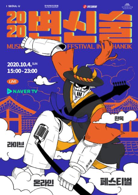 온라인 음악축제 <2020 변신술>은 서울시가 4일(일) 남산골한옥마을의 다양한 매력을 다채로운 음악과 함께 알리고자 기획된 행사로, 재즈, 블루스, 시티 팝, 락, 어쿠스틱, 레게 등 11팀의 다양한 장르의 음악인이 참여하였다. 날이 밝은 오후부터 해가 진 가을밤의 한옥까지, 시시각각 달라지는 한옥의 정취를 화면을 통해 만나볼 수 있도록 15시부터 23시까지 8시간 동안 진행되었다.