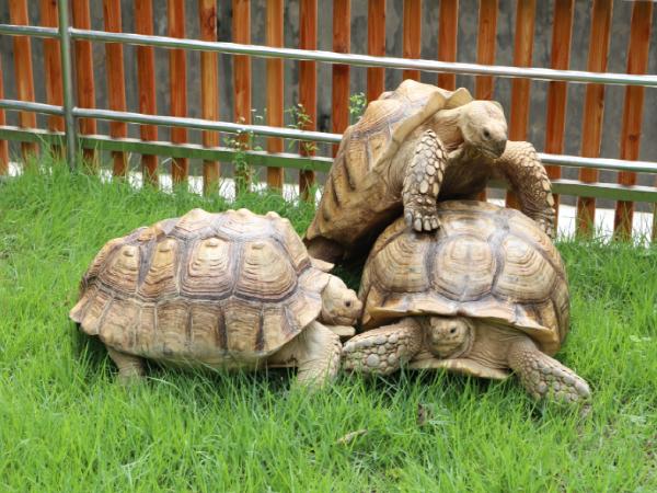 보통 동물원에 있는 파충류는 실내에서 볼 수 있다. 그러나 설카타육지거북의 새 방사장은 잔디가 깔린 야외 공간으로 동물들의 행동반경도 훨씬 넓어지고 일광욕도 할 수 있다. 방사장 한가운에 있는 얕은 폰드도 특징이다. 설가타육지거북은 수영을 전혀 못하지만 물에 들어가면 배변활동을 돕고 원활한 요산 배출과 변비가 예방되어, 그 습성을 반영하며 설치해준 것이다.