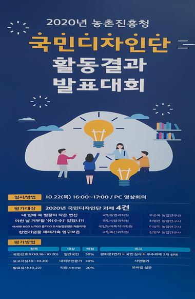 [한국4차산업신문] 농촌진흥청은 정책을 국민들과 함께 설계하는 국민디자인단의 성과를 공유하기 위해 22일 ‘2020년 국민디자인단 성과 공유대회’를 개최했다.